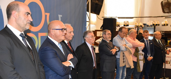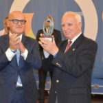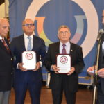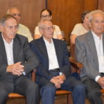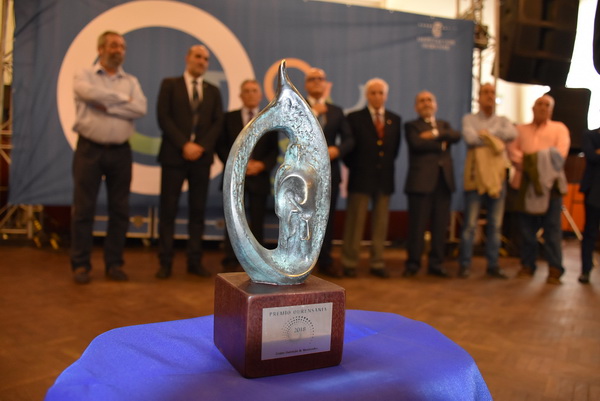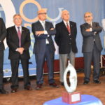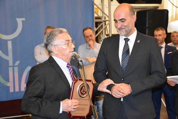 El presidente del Centro Orensano de Montevideo Jesús Vázquez acompañado por el presidente honorífico Eliseo Rivero, han recibido la premiación concedida en el salón de actos de Casa de Galicia de manos de José Manuel Baltar, de la diputación de Orense y Jose Luis Ferro, alcalde de Celanova.