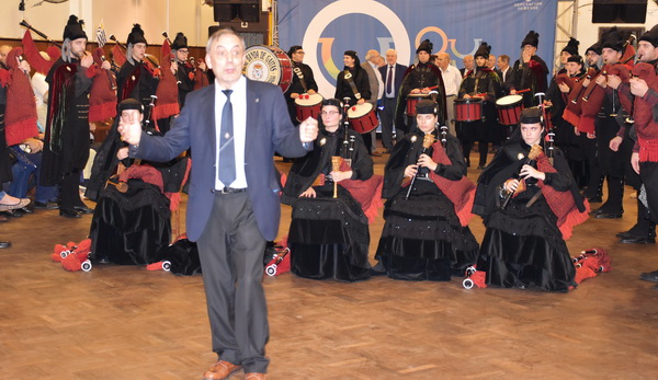 Luego de la parte protocolar la Real Banda de Orense ingresó al salón colmado de público dando el toque de solemnidad al acto.