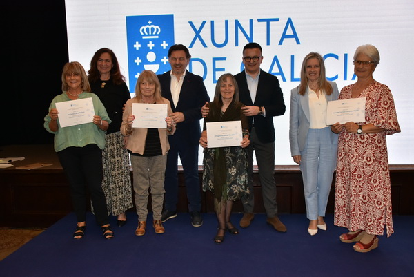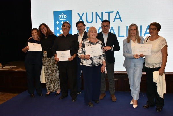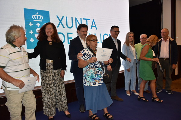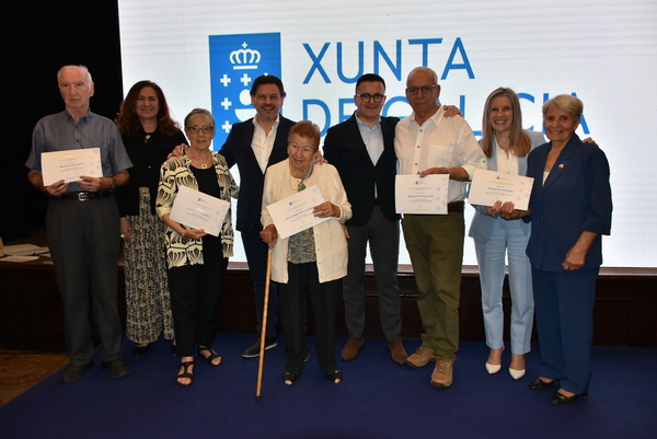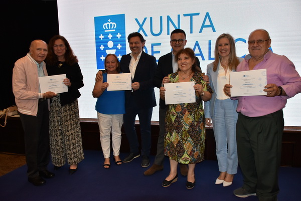El sec. Xeral de Emigración Antonio R. Miranda, junto al conselleiro de Empleo, Comercio y Emigración, José González Vázquez, la consejera de trabajo y SS de la embajada de España Isabel de Zulueta y la delegada de la Xunta de Galicia Elvira Domínguez han entregado los correspondientes certificados de haber realizado esas actividades en Galicia.