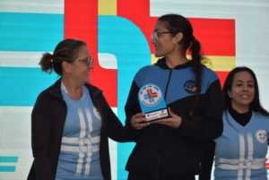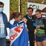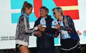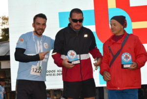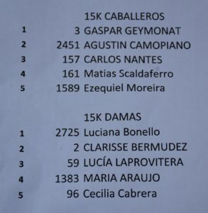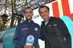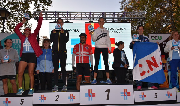 El ganador de los 15 k categoría hombres ha sido Gaspar Geymonat El presidente de la AEPSM le ha entregado su trofeo en el podium. La ganadora en la misma categoría ha sido Luciana Bonelo, recibiendo el premio de manos de Patricia García.