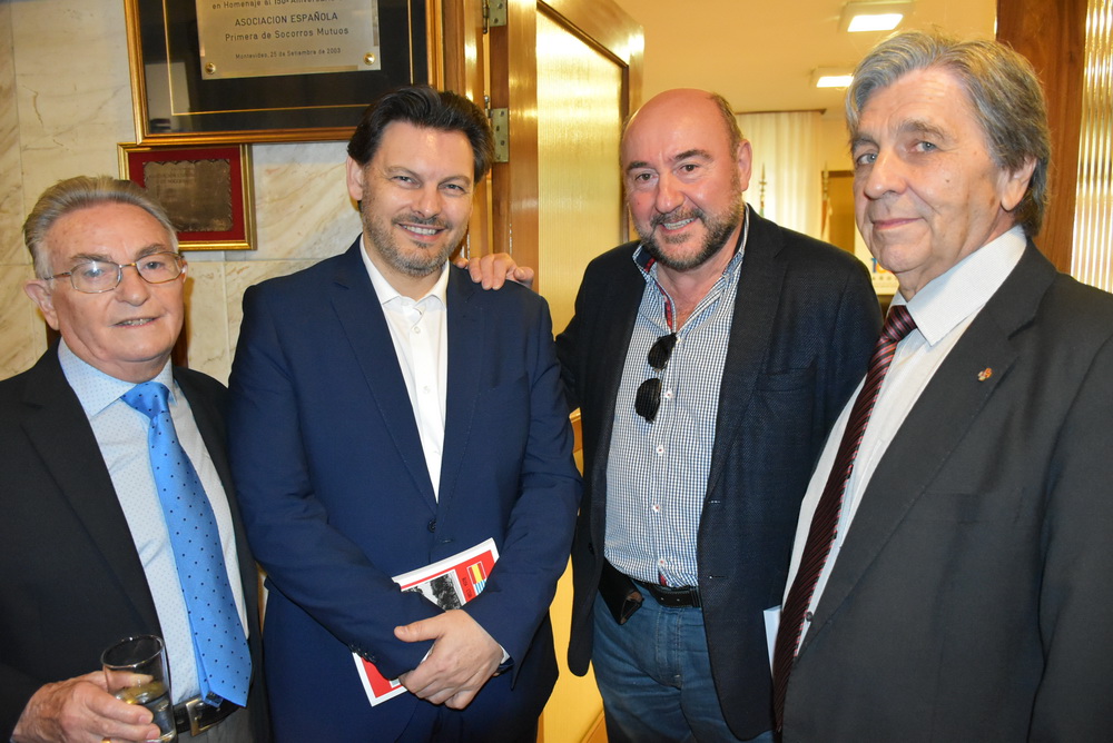 Foto de archivo de España vale , de la última visita del presidente Feijoo y A. R Miranda con directivos del Centro gallego de Montevideo