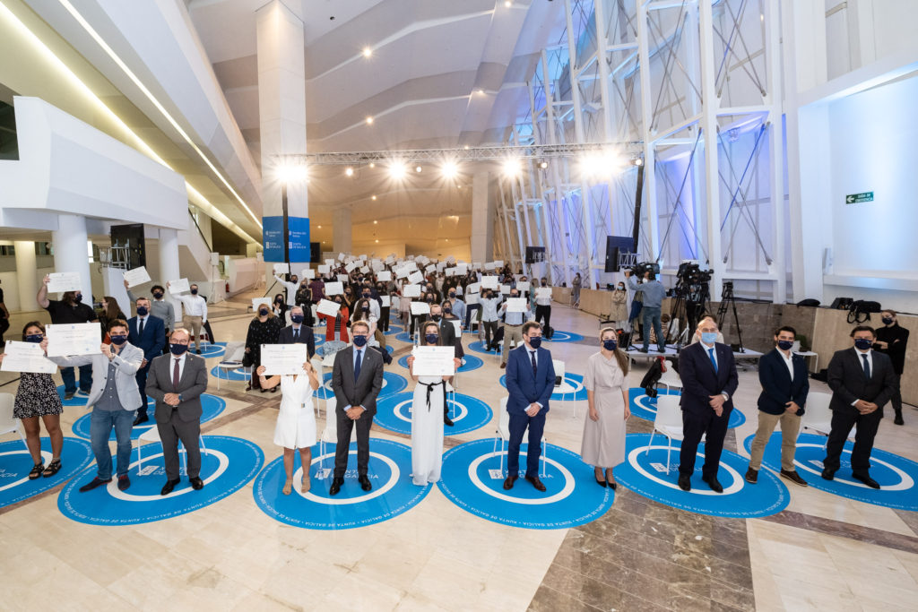 El Museo Gaiás de la Cidade da Cultura acogió esta mañana el acto de entrega de los diplomas de las becas BEME (Becas Excelencia Mocidade Exterior) a los 150 beneficiarios de esta cuarta edición de una iniciativa que desarrollan de manera conjunta la Consellería de Cultura, Educación e Universidade y la Secretaría Xeral de Emigración. Ambos dirigentes de sendos departamentos, Román Rodríguez y Antonio Rodríguez Miranda, acompañaron al presidente de la Xunta, Alberto Núñez Feijóo, en la concesión de las acreditaciones a los estudiantes que, en este año de restricciones por la pandemia, cursaron estudios de máster o postgrado en alguna de las tres universidades de la comunidad autónoma.