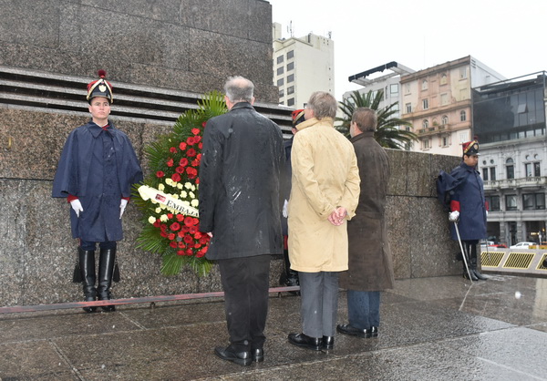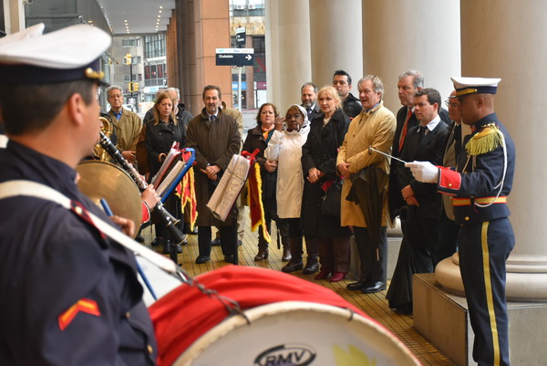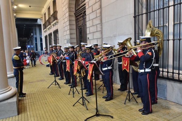 La banda del liceo militar José Artigas ha dado marco musical debajo de la pasiva de la antigua casa de gobierno. Interpretaron un pasodoble, la Cumparsita y a Don José.
