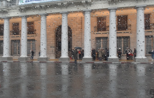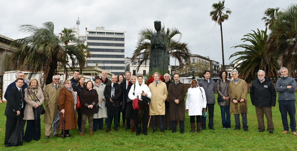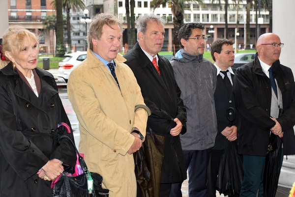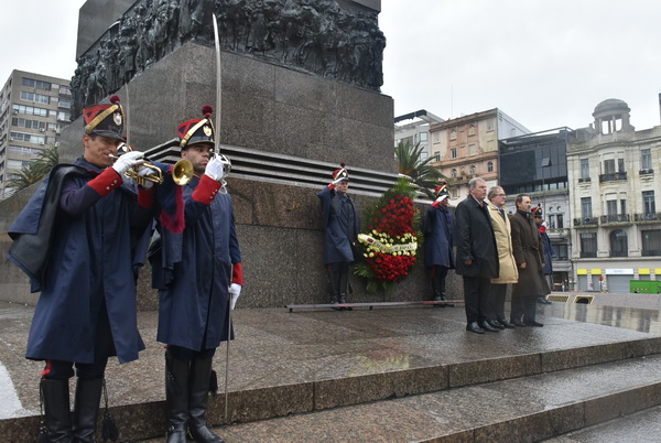 Deslucido por la poca participación, pero esforzado acto solemne se ha llevado a cabo a pesar de la lluvia y viento reinante al pie del monumento a José Artigas e Isabel La Católica.