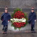 A pesar de las inclemencias del tiempo en este 12 de octubre de 2019, se han realizado las ofrendas florales en Plaza Independencia y Plaza España como se había previsto.