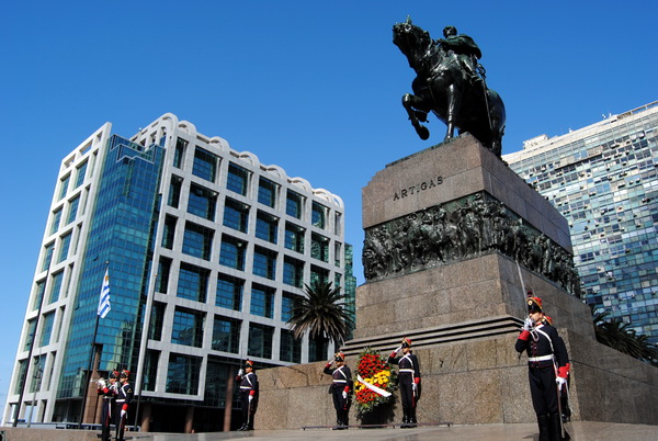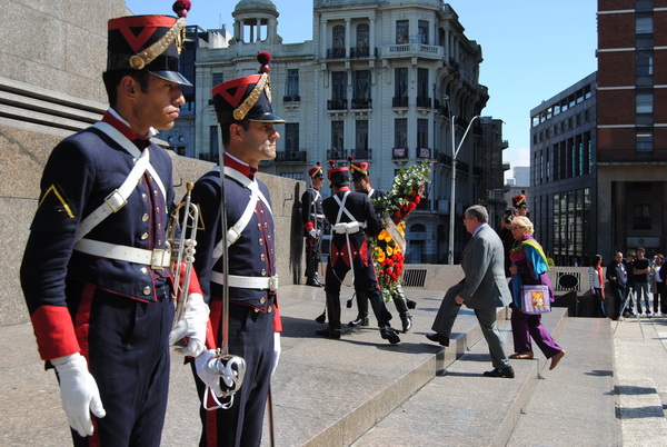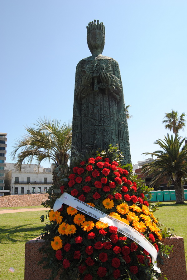 Hoy lunes 14 de octubre, hace instantes,  los directivos de la federación de instituciones españolas en Uruguay, junto a  representantes de la embajada y el consulado de  España,  han realizado los actos de ofrenda floral al pie del monumento a  José Artigasen  plaza independencia  y de  Isabel  la católica en Plaza España.