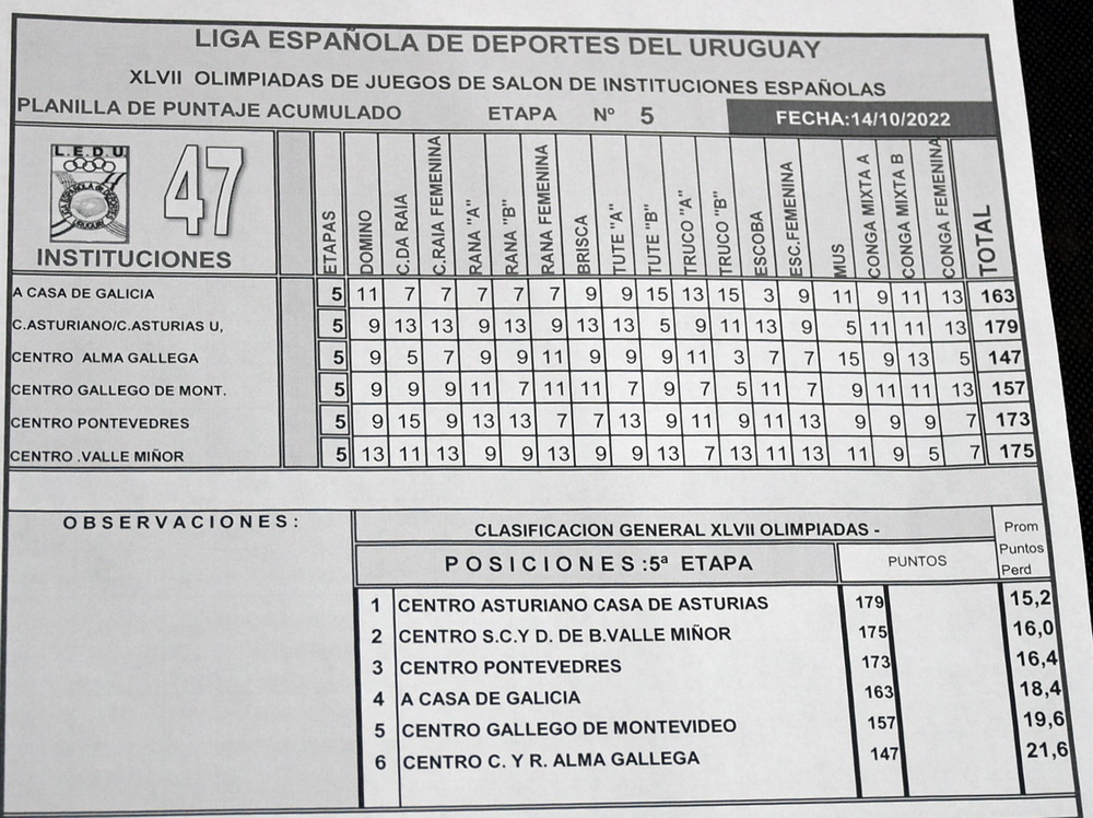 Aquí las planillas hasta el momento de los resultados de la quinta etapa.