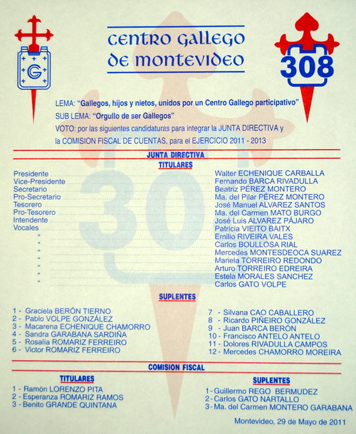 Los representantes de la lista 308 del Centro Gallego de Montevideo han llamado a la prensa para unas sesión fotográfica de su equipo de trabajo y presentar su propuesta y plataforma.