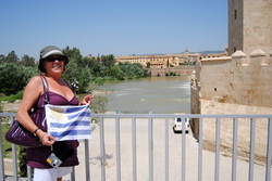 Algunos del grupo portaban nuestra bandera y he aquí la foto en el lugar más caliente de Cordoba junto al Guadalquivir.