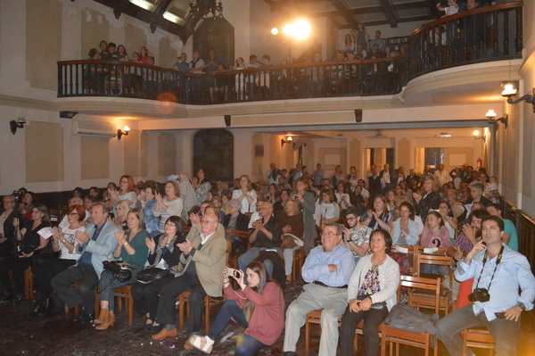 Varias han sido las sorpresas de la noche y la primera ha sido al entrar, el recibimiento a los invitados que colmaron la histórica sala Valle Inclán del Centro más antiguo del mundo, con una ”pandeirada”.