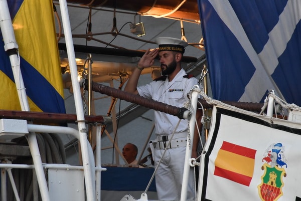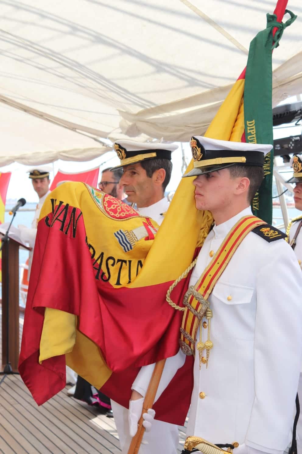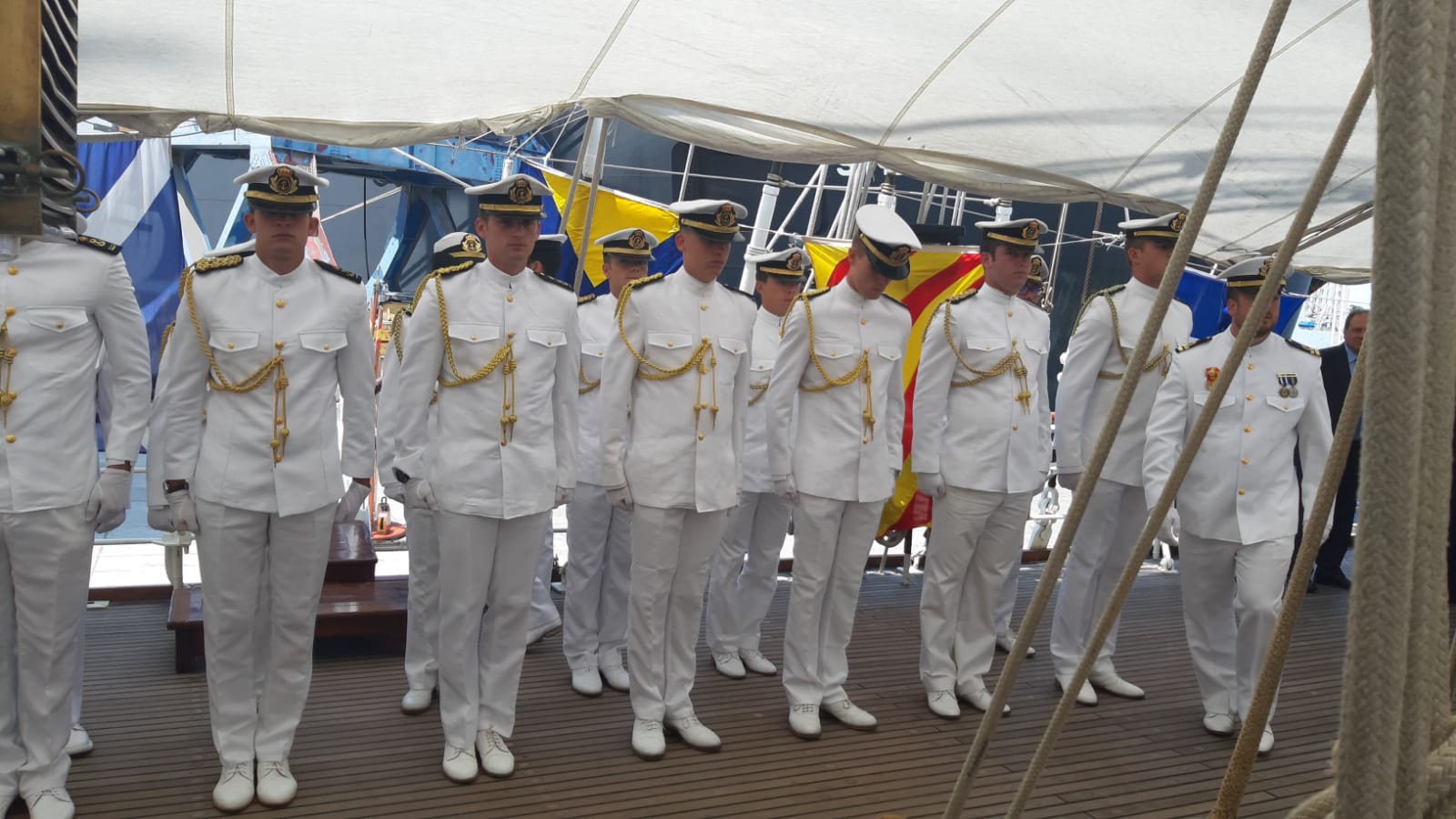 Durante este viaje, bajo el mando del capitán de navío Santiago Colsa Trueba, se instruyen a bordo más de cincuenta futuros guardiamarinas españoles.