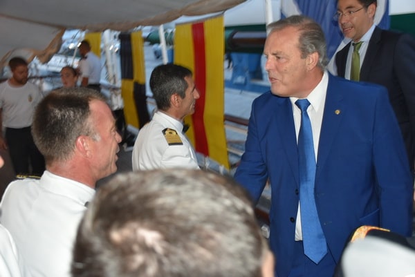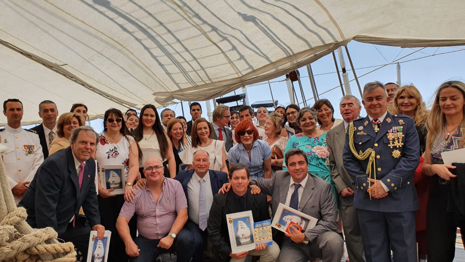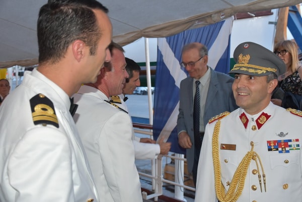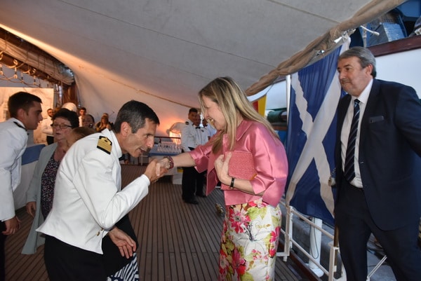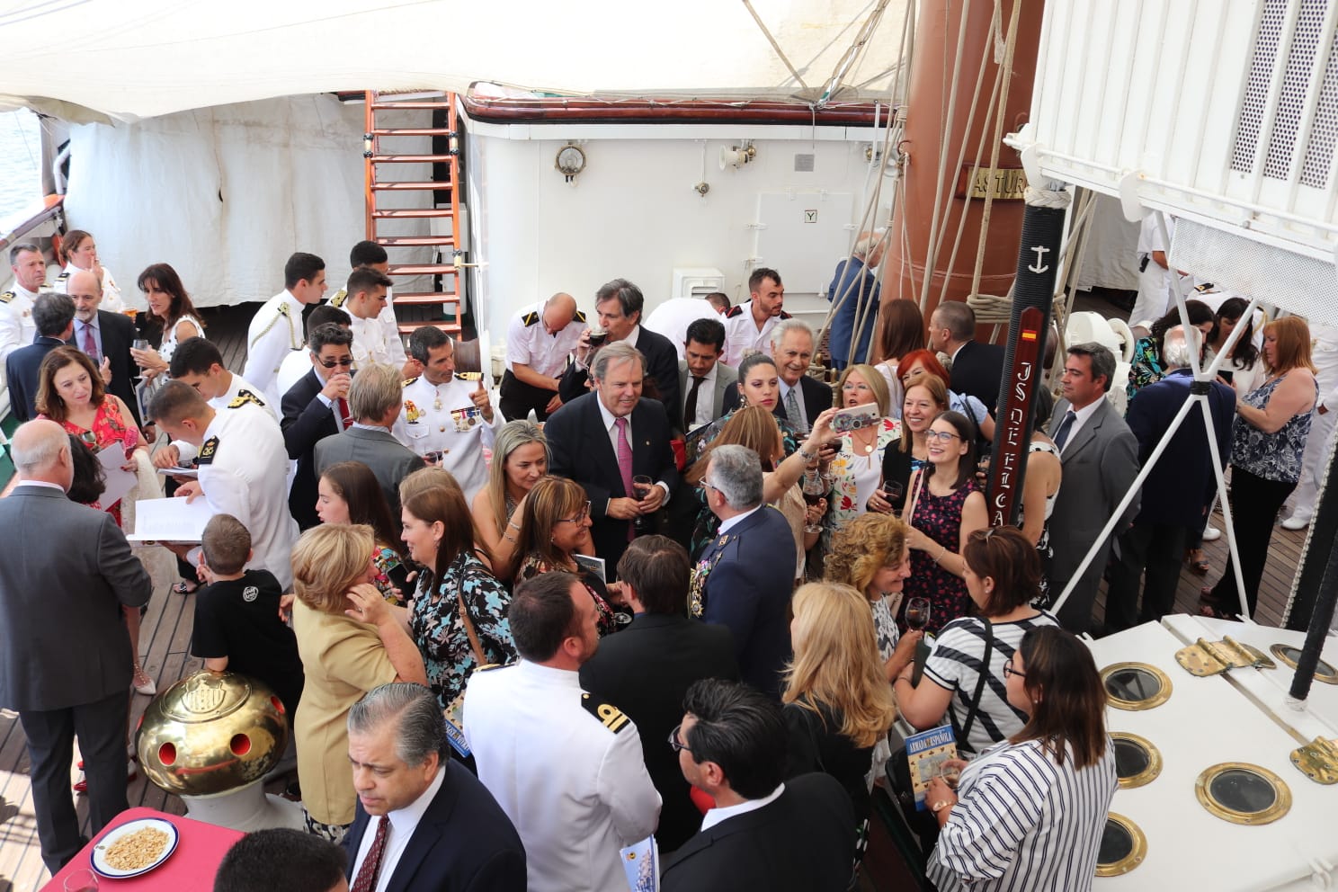 El Capitan junto a sus oficiales han recibido a todos los invitados al pie de la escalera.