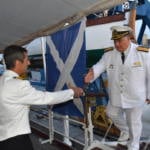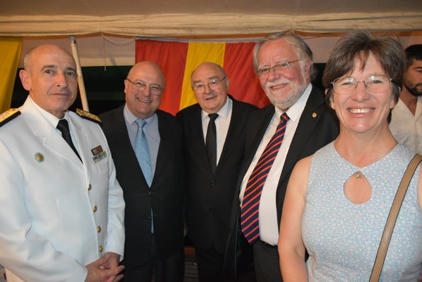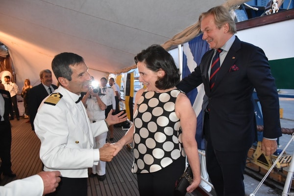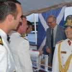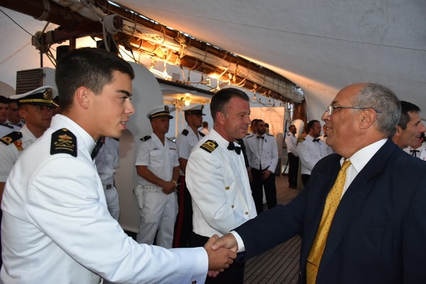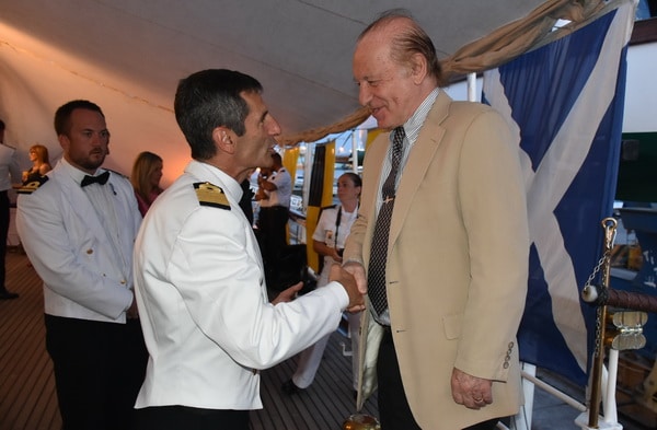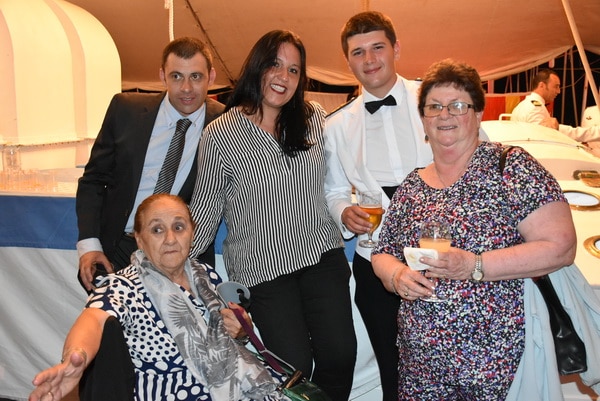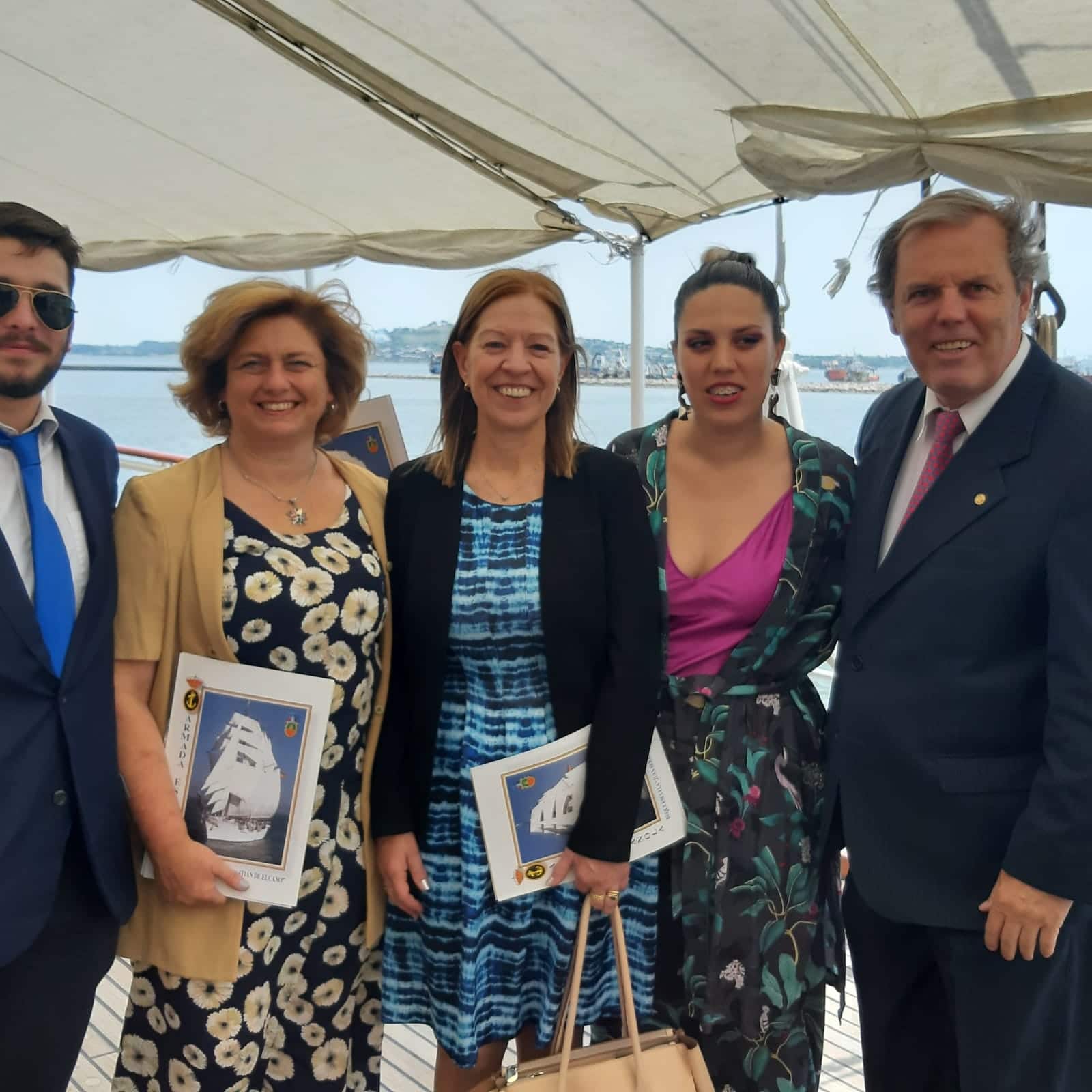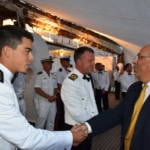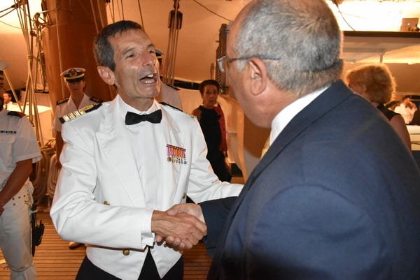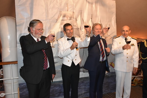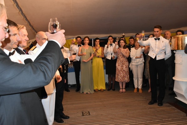 El Capitan junto a sus oficiales han recibido a todos los invitados al pie de la escalera.