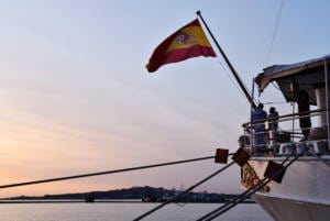A la puesta de sol, se realiza el acto de arriar la bandera mientras se escuchan los himnos nacional de España y el del país anfitrión.