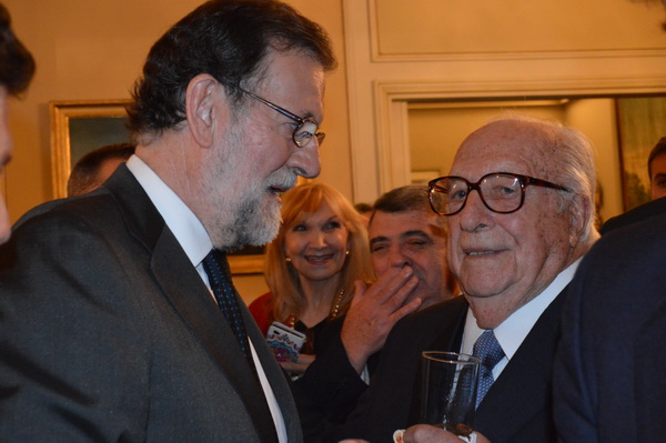 En el ágape Mariano Rajoy acompañado de su anfitrión Roberto Varela recorrió los salones y patio de la embajada y habló muy amablemente con todo quien se lo solicitaba.