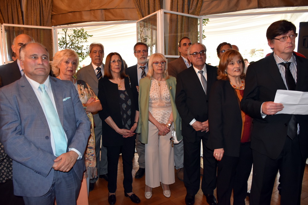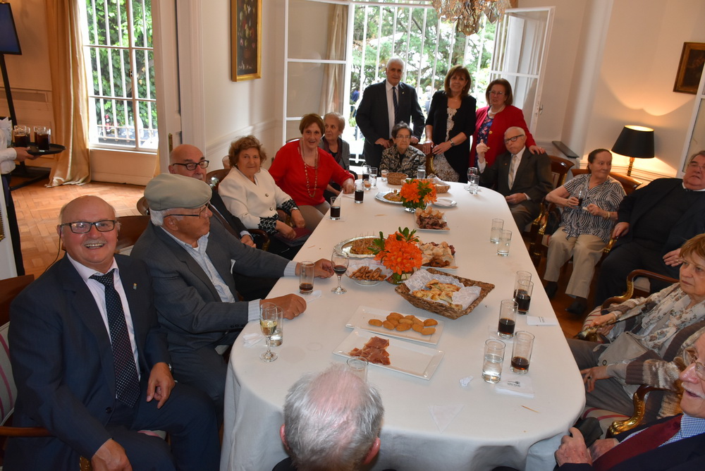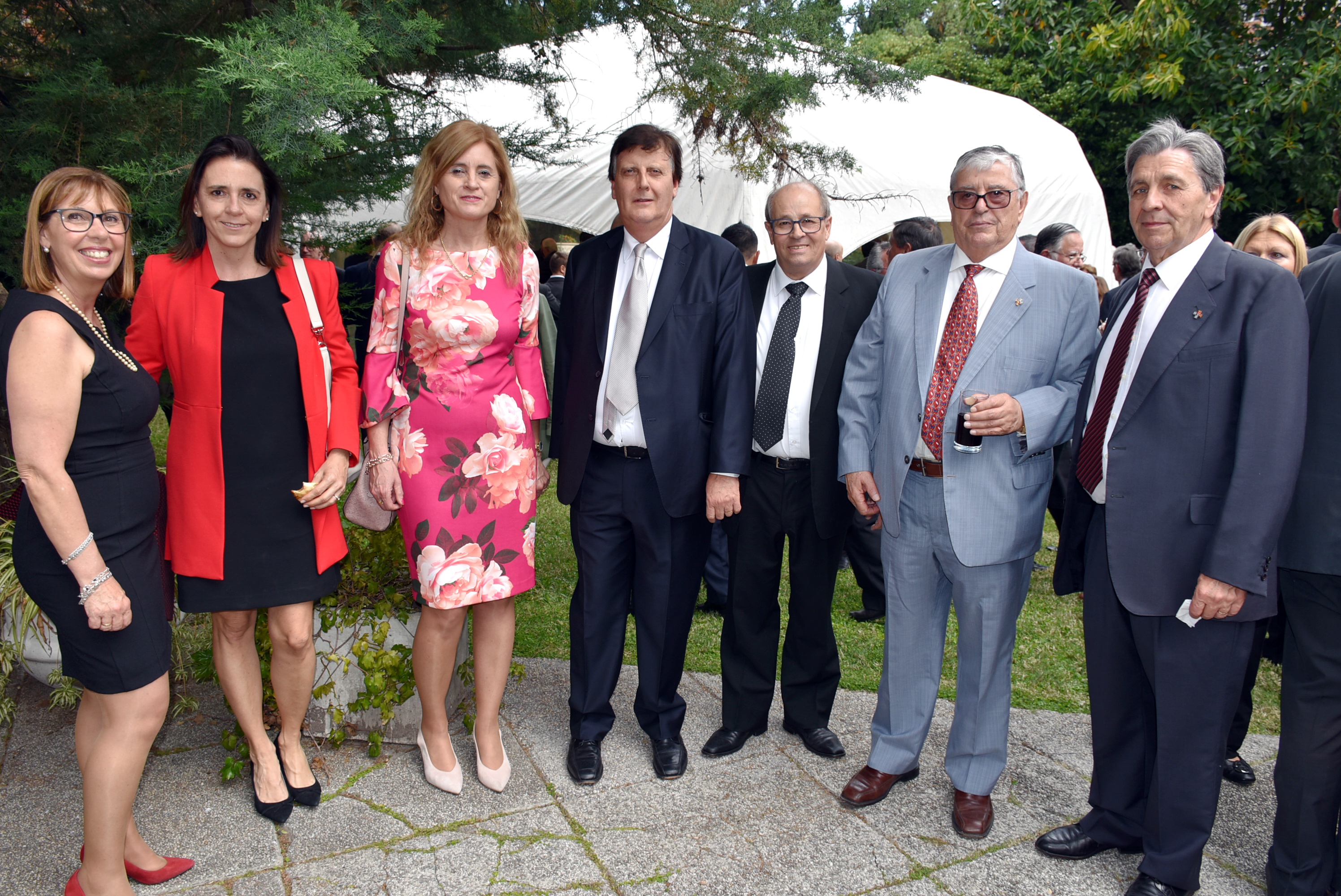 En la foto superior, altas autoridades de la Asociación Española en los jardines de la residencia han sido agazajados con paella y asado criollo.