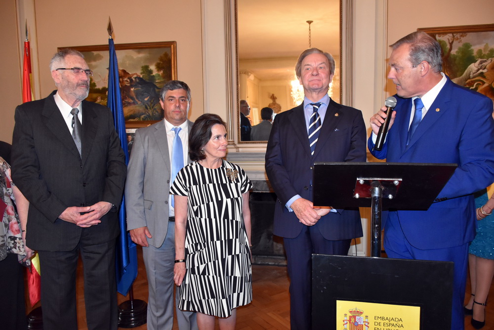 Con motivo de la celebración de la fiesta nacional de España, el embajador de EspañaJosé Javier Gómez-Llera y García-Nava y su esposa Dª. Covadonga Prego de Oliver y Tolivar han recibido a autoridades nacionales e internacionales, cuerpo diplomático, personalidades del mundo político empresarial, social y cultural y miembros representantes de la colectividad a participar de dicha fiesta en la residencia de la embajada de España.