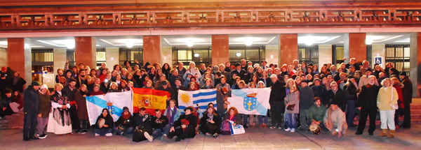 Para celebrar el día del apóstol Santiago, o día de Galicia en Montevideo la colectividad gallega se ha congregado en la explanada de la Intendencia Municipal de Montevideo a la hora exacta que en España comienza la celebración.