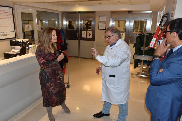 Posteriormente visitaron Cardiología donde el Dr. Daniel Mallo les mostró justo cuando se estaba haciendo una operación. Hay dos angeógrafos que funcionan simultáneamente, dedicado uno a la cirugía vascular y otro cirugía cardiológica. El acceso es altamente restringido sin equipamiento de seguridad e higiene.