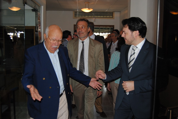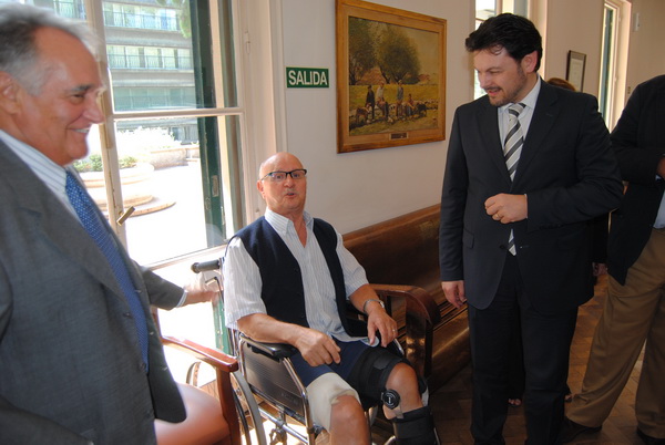 El secretario Xeral de emigración D. Antonio Rodriguez Miranda a llegado al hogar de ancianos acompañado del delegado en Montevideo de la Xunta Manuel Barros el consejero de empleo Andrés Gonzalez, Idefonso de la Campa y el embajador de España Roberto Varela Fariña.