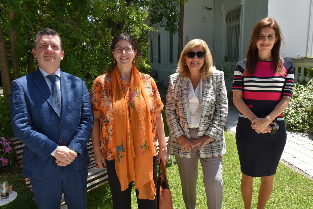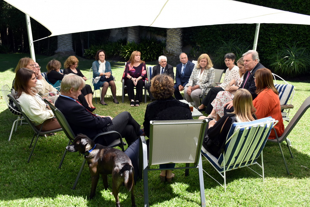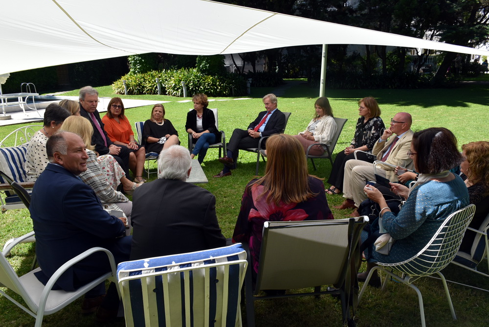 La ocasión ha sido propicia en los jardines de la embajada, para intercambiar con las ilustres visitantes puntos de vista de las instituciones españolas, el CRE , FIEU, Delegación de Entidades Gallegas y algunos directivos del colectivo español en Uruguay.